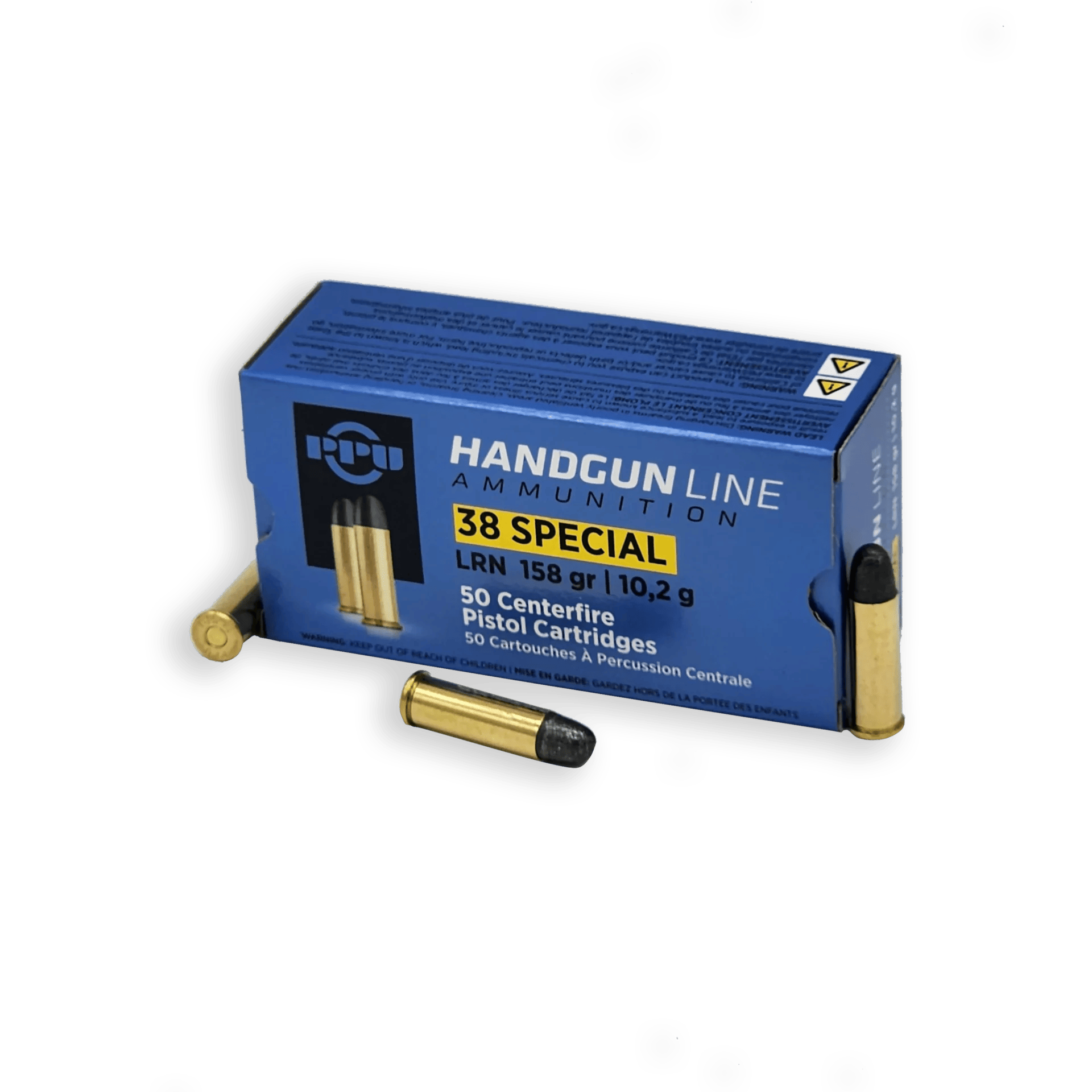 Unlock unmatched reliability and performance with our 38 Special PPU Handgun Line 158 Grain Lead Round Nose ammunition. This cartridge features a 158-grain lead round nose bullet, renowned for its stability, accuracy, and consistent trajectory, making it ideal for both practice and competition. Each round is encased in a high-quality brass casing, ensuring reliable feeding and extraction, as well as excellent corrosion resistance. Packaged in a practical 50-round box, this ammunition is well-suited for extended trips to the range or competitive events. Manufactured by PPU, a leader in the ammunition industry, this product ensures consistent performance and dependability. Elevate your shooting experience with the power and precision of the 38 Special PPU Handgun Line 158 Grain Lead Round Nose.